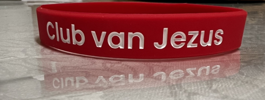 Club van Jezus is de inzet. U krijgt het bandje om daarmee een selfie te maken en de selfie (of video) te delen op de sociale media. Gebruik daarbij #ClubvanJezus en #EBGRC en noem ons @EBGROTTERDAM